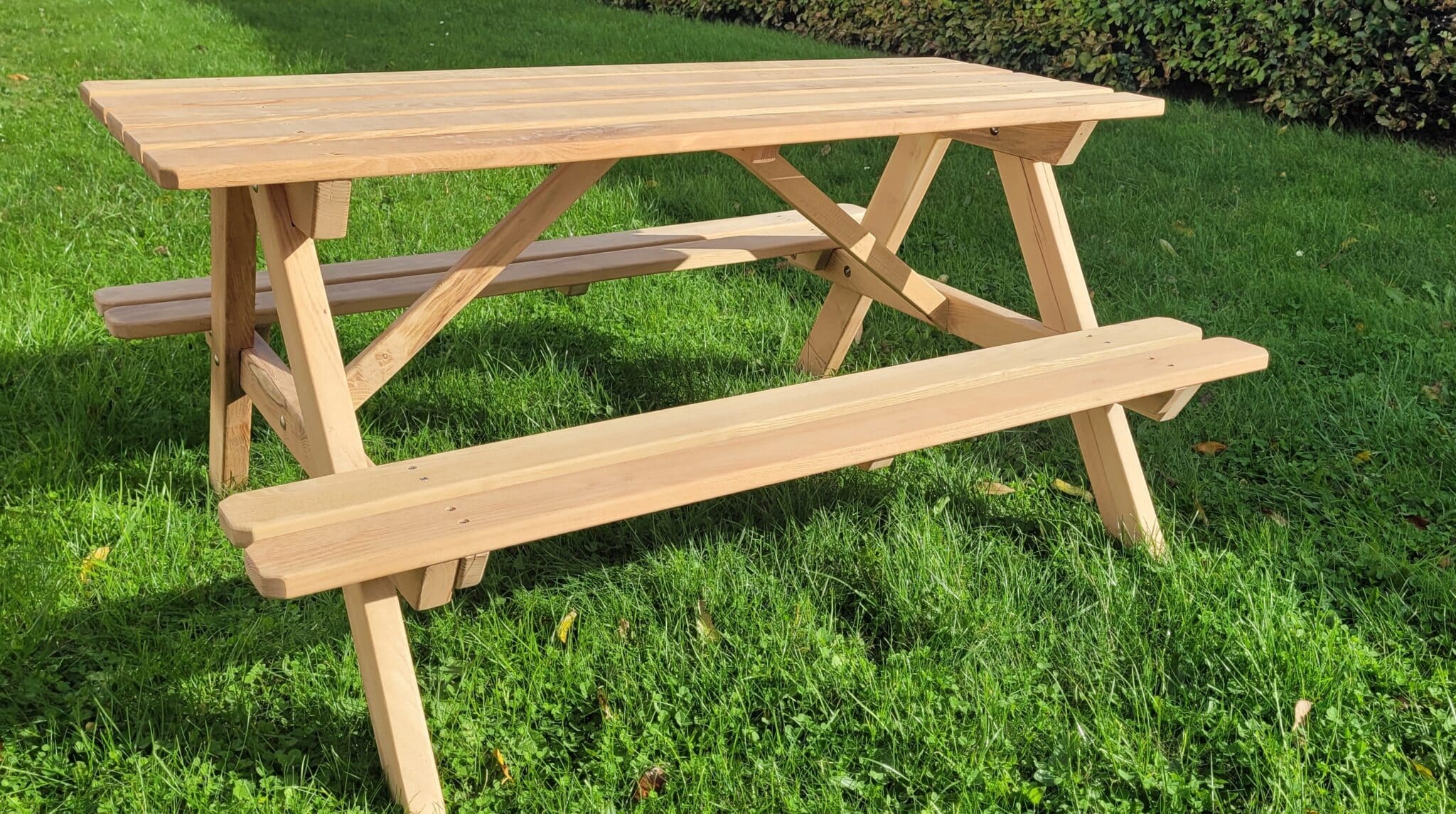Klassik bordbænkesæt til børn 3-7år. Håndlavet i robinie planker 30mm. Bord 120cm x 50/95/60cm L X B X H.