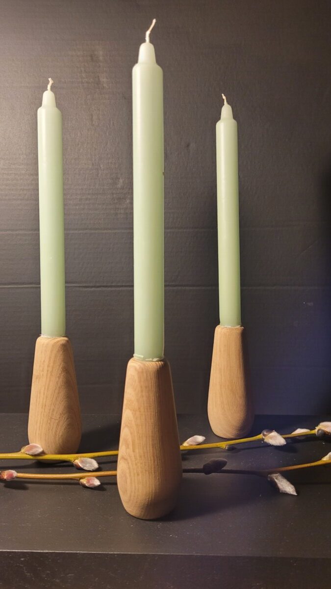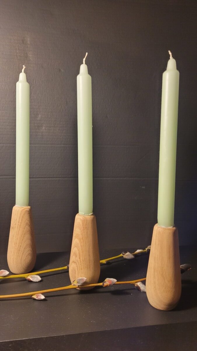 Timberruds Fyrfadsstager i lyse robiniehårdtræ, Håndlevede, Helt unik