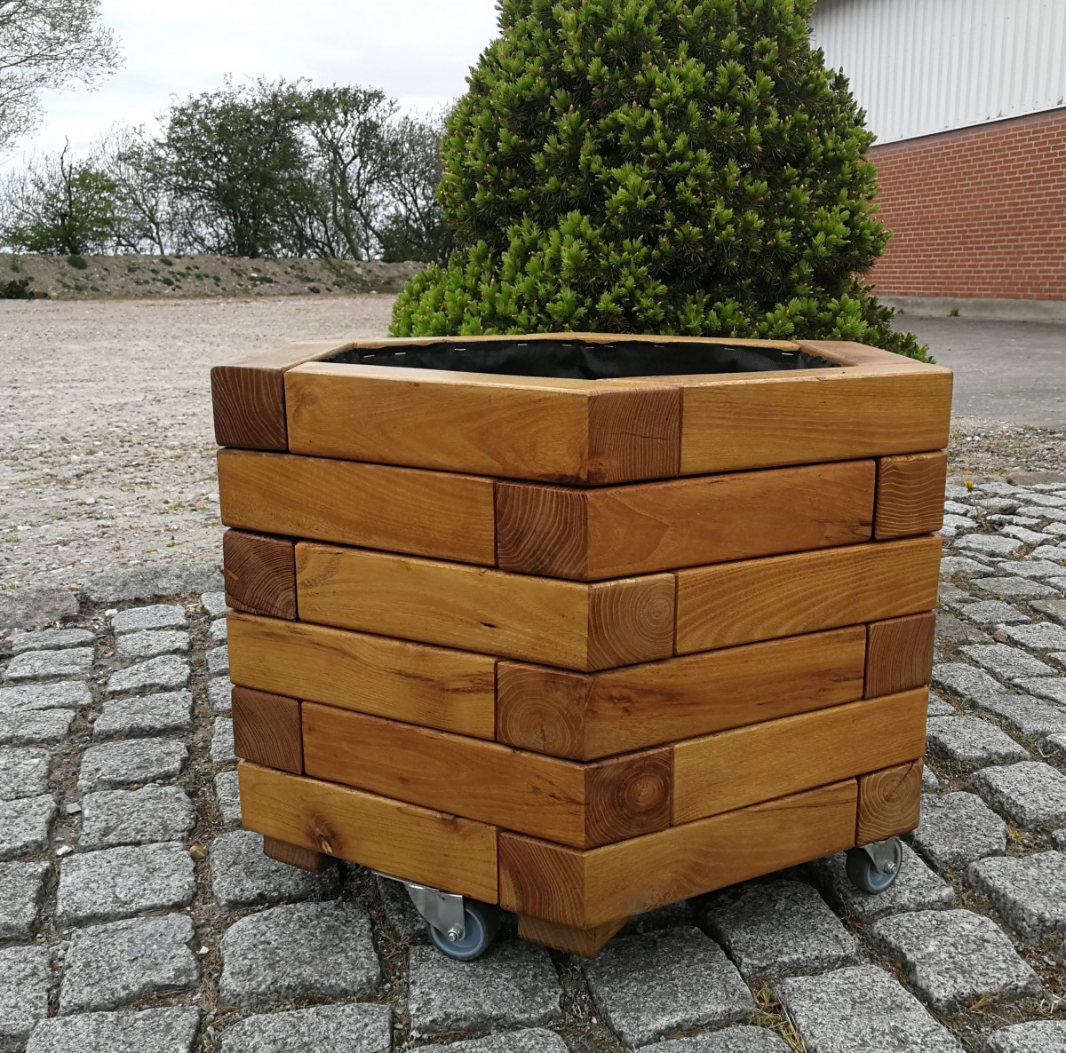 Plantekasse Heimdal – Sekskantet – er  bygget i høvlet robinie stolper 60mmx60mm. Meget holdbar produkt. De flotte og praktiske blomsterkasser fra Timberrud er perfekte til dyrkning af krydderurter, blomster eller jordbær på terrassen.