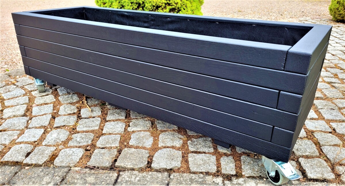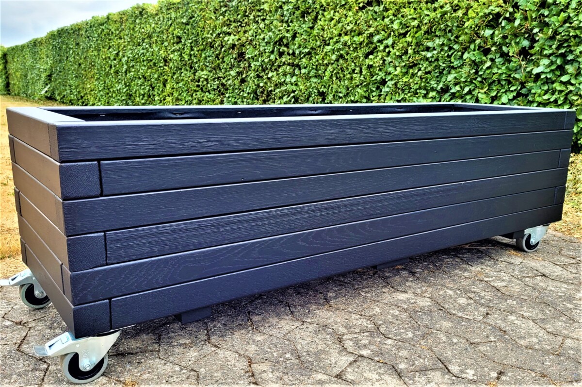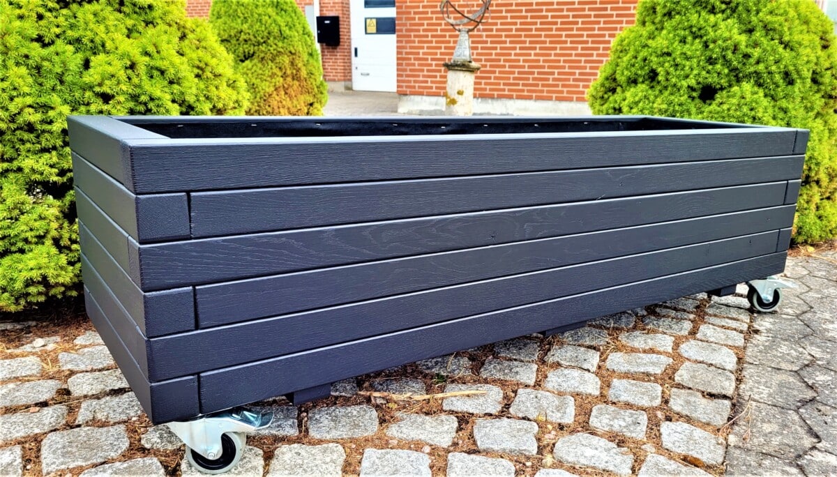 Forside / Produkter / Plantekasser / Plantekasse Odin 150x50x36cm, Eg/Sort, På hjul