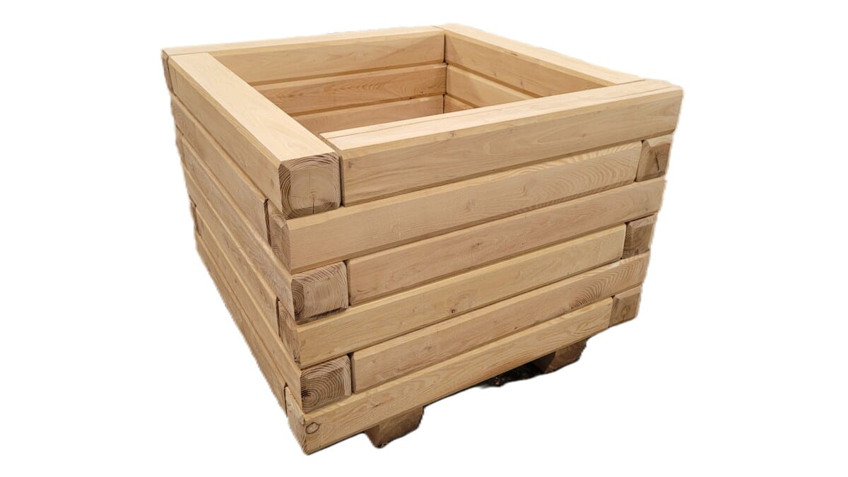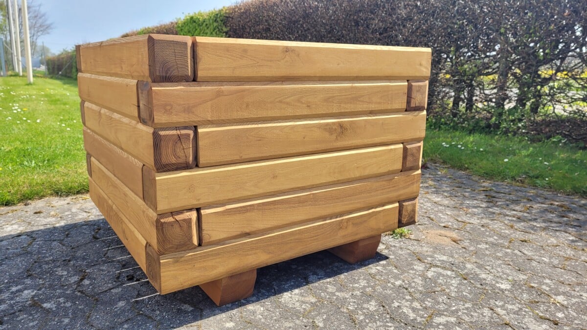 Plantekasse Holger er bygget i sveller robinie 95mmx95mm. Meget holdbar tung, og stabil produkt. De store, flotte og praktiske kasser fra Timberrud er perfekte til at plante store træet fx oliventræ
